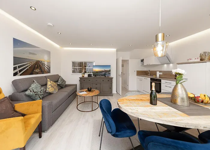 Located nearly a 5-minute walk from BeachPolo Masters, the spacious Sunside Apartment #5 Timmendorfer Strand is 2.6 km from a top family-friendly place like the Niendorf Bird Park. Staying in the apartment, nestled just around the corner from the SEA LIFE Timmendorfer Strand, guests can relax on a terrace.